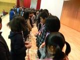 児童の皆さん。校長先生が話した「欠席ゼロに!」の言葉を