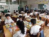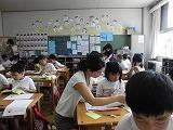 ベネッセの和田美幸様・吉嵜真紀子様を講師にお迎えして、2・3年生で「辞書引き学習」を行いました。「じしょと友だちになろう」を目標に、辞書の仕組みを学び、ふせんを使って辞書に載っている言葉で知っているものを書き貼っていきました。目指せ辞書引きChampion。次にどちらが先に辞書に載っているかクイズに挑戦(うさぎとかめ、ペンチとベンチ、カードとかい)しました。その次にしりとり(3年生は2文字しりとりに)を行いました。最初に左側が辞書引きして問題を出し、右側が答えをさがししりとり問題を続けました。辞書に少し親しんできたところで意味調べに挑戦、意欲的に取り組みました。『習うより慣れろ』。明日からたくさんの辞書引き名人が登場してくれることでしょう。(御家庭でも、お子さんと一緒に辞書と友だちになってみませんか!?)和田様・吉嵜様一日ありがとうございました。