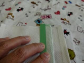 ⑧裏側から左右(ゴムを付ける部分)の補強のため両面テープを貼ります。