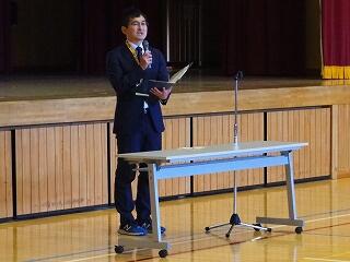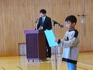 12月25日(月)、長かった2学期の終業式を向かえました。2年生と5年生の代表児童4名が、2学期の振り返りの作文発表をしてくれました。どの児童も、2学期に頑張ったことや冬休みにやりたいことなどをしっかりとした態度で読むことができました。