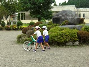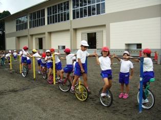業間休みや昼休みの長い休み時間には、一輪車で遊ぶ子どもの姿が