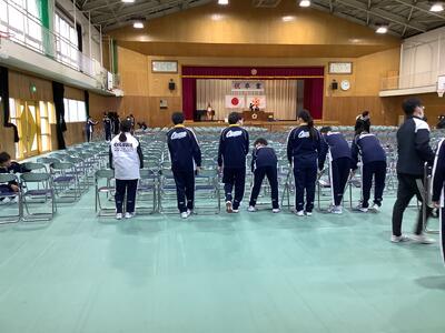 卒業式を明日に控えて、本日は予行練習と部活動お別れ会、卒業式準備が行われました。