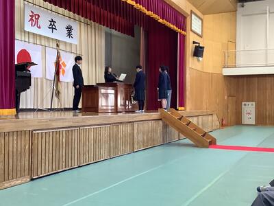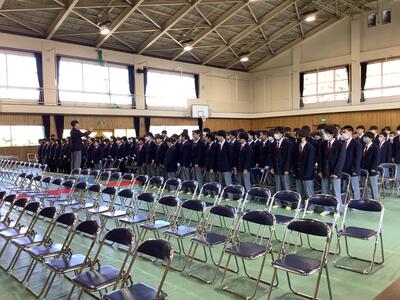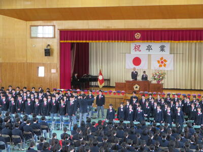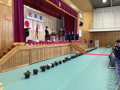 予行練習では本番のように緊張感をもち、一つ一つ丁寧に行うことができました。卒業生はもちろん、在校生の態度も大変立派でした。明日の本番がたのしみです。きっと心のこもった良い式になることでしょう。