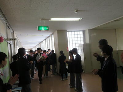 3年生から先生方に感謝の手紙と花束が渡されました。