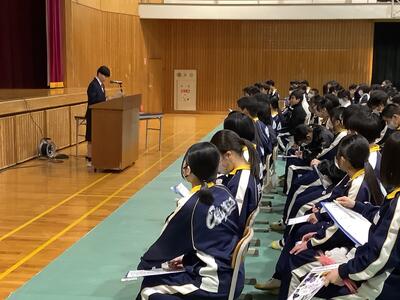 また最後に今年度の入試の動向と次年度からの県立高校の入試制度について、進路指導主時よりお伝えしました。