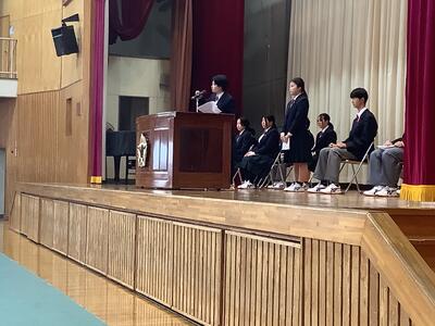 生徒会役員選挙を行いました。3年生からのバトンを受け継ぐ覚悟をもって、12名の1・2年生が立候補し、自分の思いをしっかりと伝えていました。