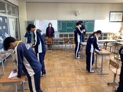 生徒会主催による全校奉仕活動が行われました。各委員会ごとに活動場所に分かれ、日頃お世話になっている校舎等の清掃や片付けを行いました。10年以上続く伝統ある活動です。約1時間、協力しながら、集中して働く姿があとこちで見られました。3年生が中心となる大きな生徒会活動はこれが最後。しっかり伝統を下級生に受け継ぐことができました。