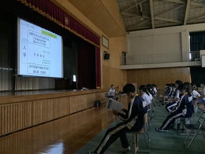 私立高校、通信制高校、高等専修学校、6校の先生方にお越しいただき、3年生の生徒と保護者を対象に説明会を実施しました。各校の学科の特色や入試に関する情報を具体的にお話いただきました。今後の進路選択に生かしていただければ幸いです。すべての生徒が、自分ごととして真剣に聴くことができたようです。
