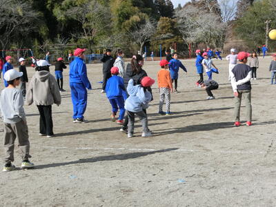 1月14日(水)昼休み、全校生が校庭に集まり、年明け初めての「みんなで遊ぼう」が行われました。青空班(縦割班)毎に、みんなで決めた遊びを楽しみます。子供たちは、月に1回のこの活動を楽しみにしています。
