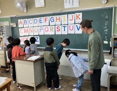 1・2年生は、2週間に1時間、外国語活動の学習を行っています。3・4年生は週に1時間です。5・6年生は外国語科(英語)の学習として週に2時間程度授業を行なっています。担任とALT(外国語指導助手)とともに楽しく授業が展開されます。