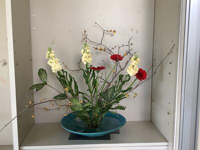 今月も、ボランティアさんが、すてきな生花を飾っていくださいました。寒さにも負けず、凛として咲いているように見えます。