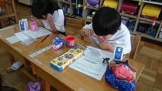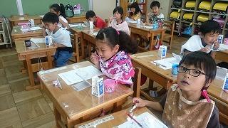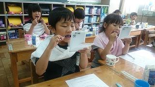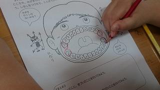 次は染め出しをして給食の後の歯磨きがきちんとできているか、調べました。