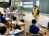 入学式からちょうど2週間たった今日、日光市の交通教育指導員さんや駐在所のおまわりさん、交通指導員さんを講師に招いて、交通安全教室を行いました。