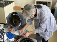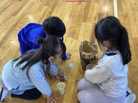10月16日(水)、収穫し、先週、脱穀した米からもみ殻を取り除く作業を行いました。もみすりです。自分で収穫した米を自分でもみすりをします。今回も、まず、米づくりの先生の説明をよく聞いてから、すり鉢とすりこぎ棒、ざると野球ボールやソフトボールなど、様々な道具を使ってやってみました。各々、工夫してやってみますが、とても時間がかかります。1校時が終わった時点で、もみを取り除く作業を完了したのは、ほんの数名でした。また、次回に続きます。