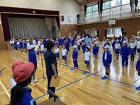 3月になりました。3日(月)、業間休みに1〜5年生が体育館に集まって、卒業式の練習を行いました。今日は、「卒業生を送ることば」の練習です。各学級で練習してきた「ことば」をみんなで合わせて練習しました。