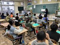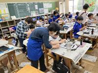 11月17日(月)、久しぶりにお米の先生をお招きして、5年総合的な学習の時間の授業が行われました。これまで学んできた米づくりについて新聞にまとめている5年生。体験の中や調べているうちにわいてきたきた様々な疑問について教えていただきました。出荷時の水分量の検査等、細かな点まで教えてくださいました。また、収穫後、来期の米づくりに向けての様々な準備や作業についても教えていただきました。これまで知らなかったことについても、たくさん知ることができました。
