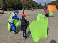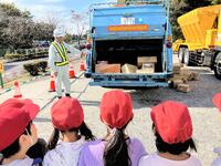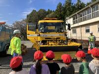 除雪車への乗車とブレード操作、パッカー車ゴミ回収の実演、パトロールカーの電子サイン操作や、旗振り合図など様々な体験をとおして、1年生はそれぞれの車両の仕事や仕組みについて学ぶことができました。