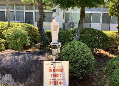 夏休みが明けましたが、暑い日々が続いています。2学期から、暑さ指数(WBGT)の新しい測定器を、資源物回収の収益金で導入させていただきました。1学期は測定した結果を放送で知らせていましたが、即時に知らせられない日もあり、子供たちも「今日は遊べるのかな」と気をもんでいたこともありました。今後は測定結果が職員のタブレットに通知されます。測定結果を教室で児童が見て、熱中症を予防するために、どのようなことに気をつけながら遊ぶとよいのか考えます。学校全体で、熱中症予防に対する意識を高めています。