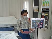 次に、工場などでものづくりをするときの工夫を、ゲームの要素を交えたもので、体験してみました。棒をたてる、板金をする、ねじをつかむなど、いろいろなことをやってみました。安全第一ということで、服装などについても分かりました。