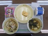 献立:牛乳 ごはん 五目厚焼き玉子 大阪漬け 筑前煮