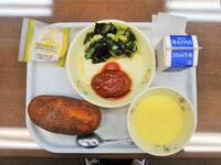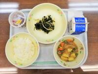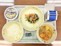 献立:牛乳 ごはん 小松菜の磯香和え じゃがいもそぼろ煮