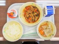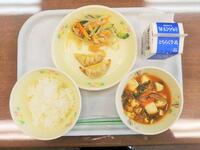献立:牛乳 ごはん 麻婆豆腐 焼き餃子 小松菜のナムル