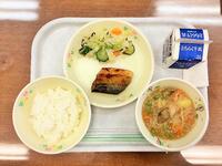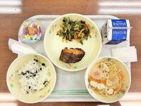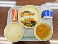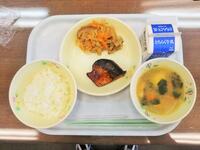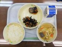 献立:牛乳 さばカレー醤油焼き おかか和え むらくも汁