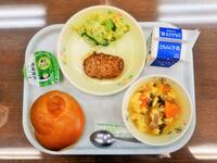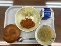 献立:牛乳 ミルクパン スラッピージョー グリーンポテト 野菜スープ
