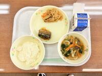 献立:牛乳 ごはん さんまのみぞれ煮 切り干し大根の煮物 沢煮椀