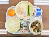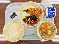 献立:牛乳 ごはん あじフライ ツナ和え 沢煮椀