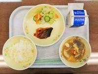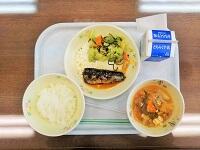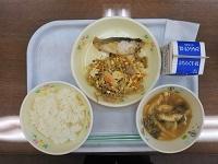 献立:牛乳 ごはん さんまみぞれ煮 つぼ漬け和え すいとん