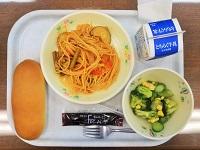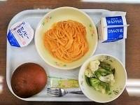 「ツナとトマトのクリームスパゲティ」は、栄養教諭の話によると、初めてのメニューだそうです。ソースがパスタによくからみ、とても美味しかったです。次にでるのが楽しみです。