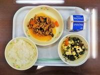 献立:牛乳 ごはん ピリ辛肉じゃが 冷奴 磯香り和え