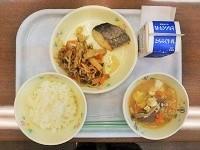 献立:牛乳 ごはん あゆ甘露煮 切干大根の煮つけ どさんこ汁
