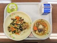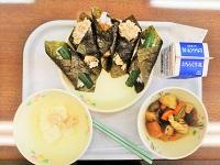 献立:牛乳 手巻きごはん(ツナ・胡瓜・梅びしお) 筑前煮