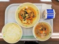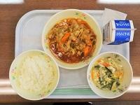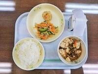 献立:牛乳 ごはん 麻婆豆腐 中華クラゲ和え ねぎまんじゅう