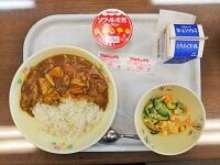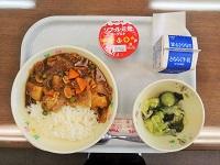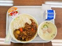 「県産和牛カレー」は、県から無償で頂いた和牛の肉をいつもよりたくさん使用していると栄養教諭が教えてくださいました。牛肉たっぷりのカレーは、とても美味しかったです。大満足です。県の皆さん、ありがとうございました。