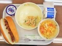 献立:牛乳 セルフホットドッグ ごぼうサラダ トマトスープ ブルベリーゼリー