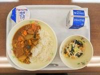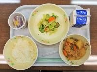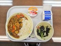 献立:牛乳 麦ごはん 冬野菜カレー 海藻サラダ アセロラゼリー