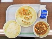 献立:牛乳 ごはん なすとトマトの和風麻婆 焼き餃子 中華クラゲ和え