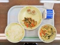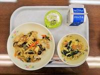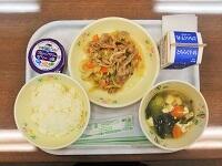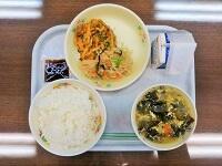 献立:牛乳 ごはん 回鍋肉 中華風玉子スープ