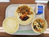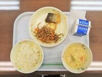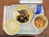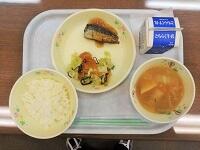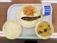 献立:牛乳 ごはん さば味勝焼き 五目きんぴら よしの汁