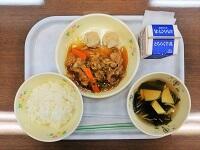 献立:牛乳 ごはん すき焼き風煮 厚焼きたまご おかか和え
