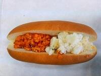 スラッピージョーとグリーンポテトをミルクパンに挟みました。ミルクパンにかぶりつきました。格別の美味しさでした。