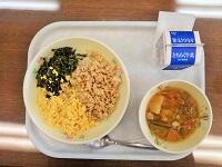 本日の「そぼろ丼」は、三色ではなく、一色でした。日光市では、「三色そぼろ丼」の献立にする学校が多いですが、他の市町では、一色の献立の方が多いそうです。本日の給食は、一色でしたが、三色の時同様、とても美味しかったです。ごちそうさまでした。
