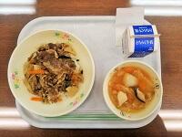 献立:牛乳 栃木和牛の牛丼 のっぺい汁