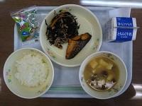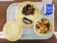 献立:牛乳 ごはん いわしおかか煮 ひじきの炒り煮 みそ汁