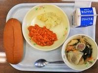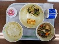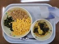 三色そぼろごはんは、ごはん給食の王様です。鶏ひき肉、炒り玉子 ほうれん草 3種類の具材がごはんの上にのり、それをいっぺんに、スプーンで思いっきり口の中に入れるときは幸せです。おいしさが口の中に広がります。本日、2年生の男の子に、「給食で何が一番好き」と訊いたところ、「ごはん」と答えてくれました。その子にとって、今日の給食は、最高だったのではないでしょうか。