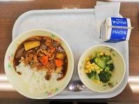 カレーといえば、子供たちの好きな給食メニュー第1位になるメニューです。本日のチキンカレー(麦ごはん)も、具の大きさがちょうどよく、美味しかったです。私は、カレーとライスをよく混ぜてから食べます。しかし、混ぜないで食べる人もいます。皆さんは、どちらですか?
