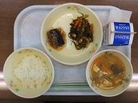 献立:牛乳 ごはん さんま梅煮 切り干し昆布の煮付け 豚汁